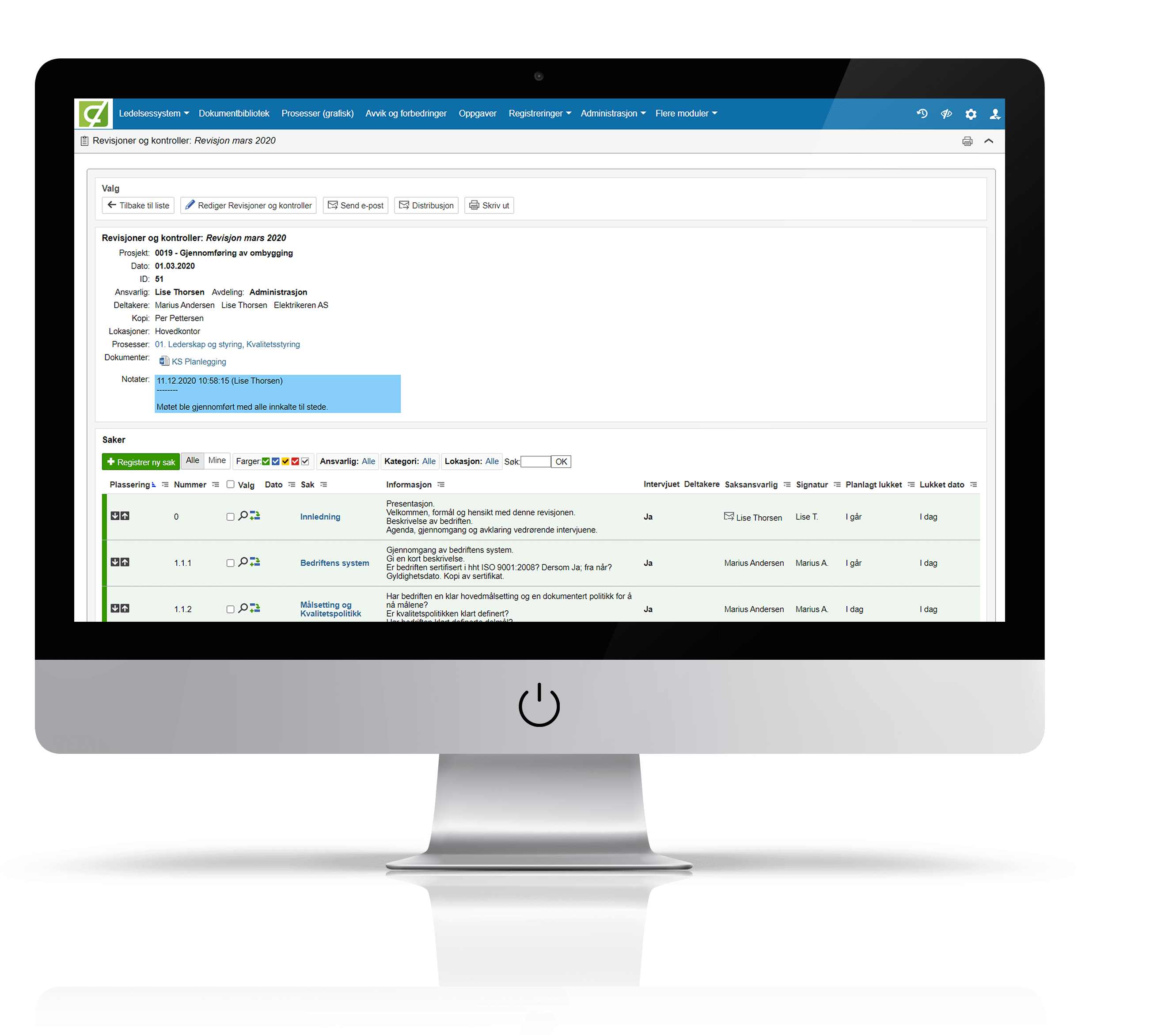 Registrer og knytt til frist, dato for ferdigstillelse, ansvarlig, beslutning, dokumentvedlegg m.m.