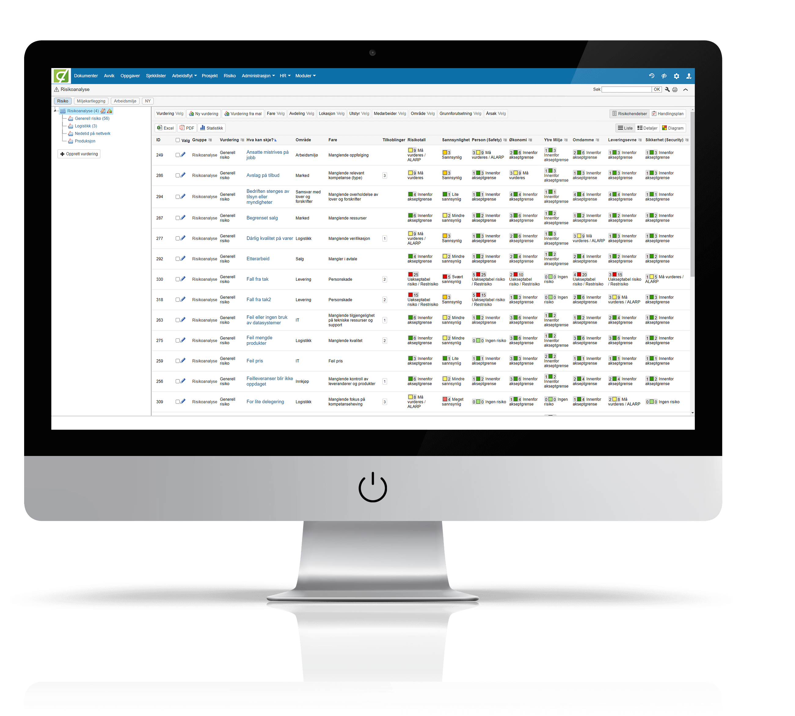 Løsningen kan optimaliseres for akkurat din virksomhet ved å sette opp egendefinerte akseptansenivåer, fargeindikasjoner og rapporter, samt flere andre parametere.